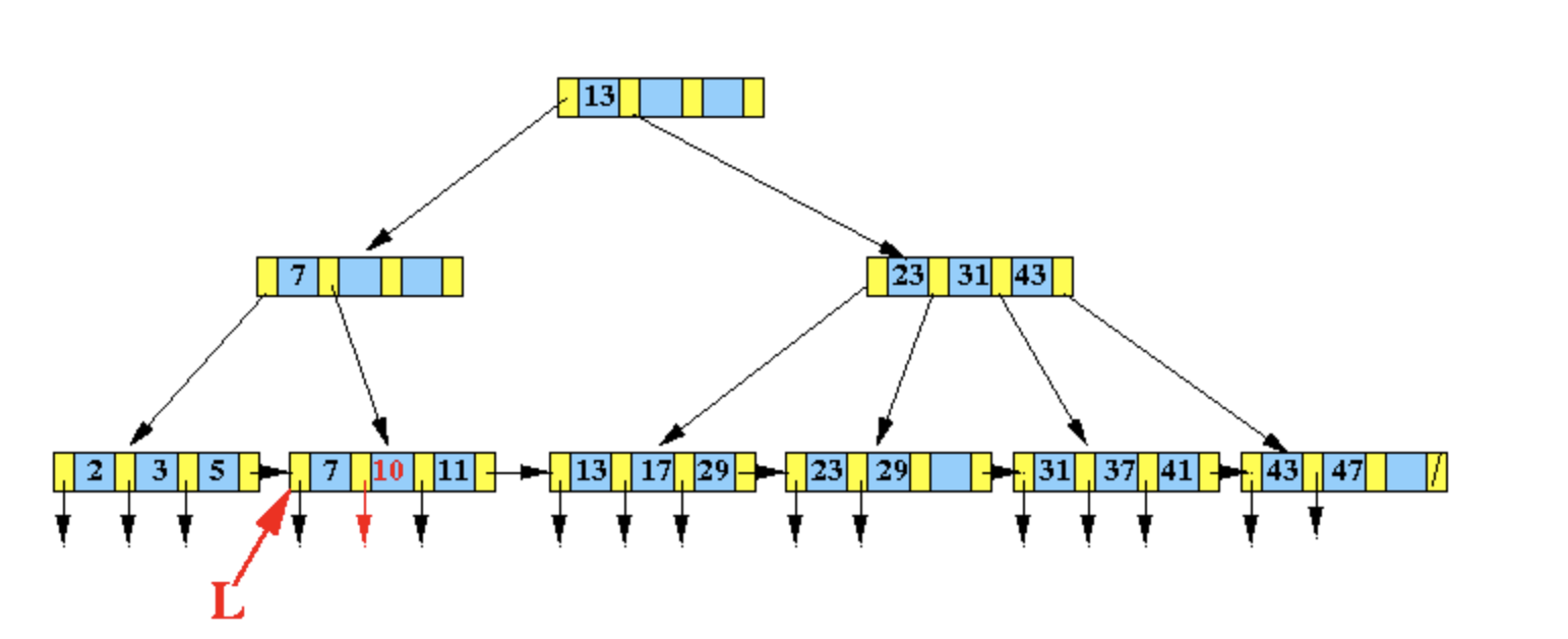 比如这样的 SQL 语句:select * from tbl where t > 10,如果使用 B+ 树存储数据的话,可以首先定位到数据为 10 的节点,再沿着它的 next 指针一路找到所有在该叶子节点右边的叶子节点,返回这些节点包含的数据。