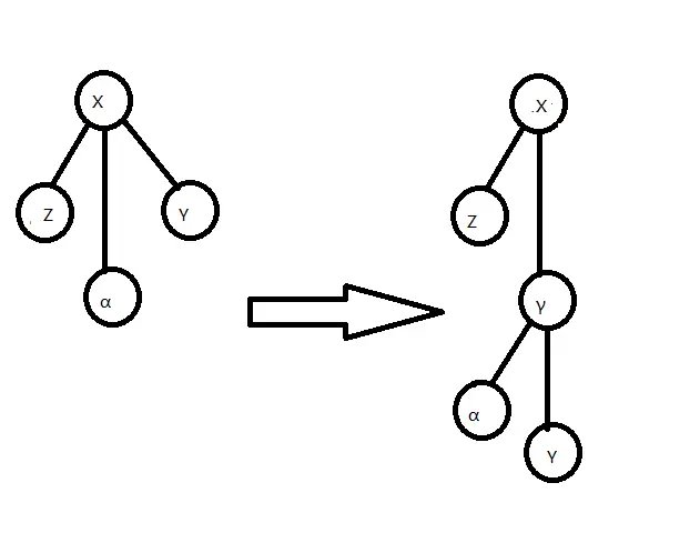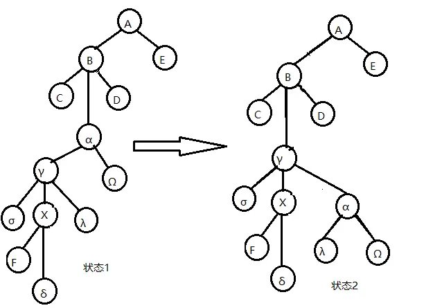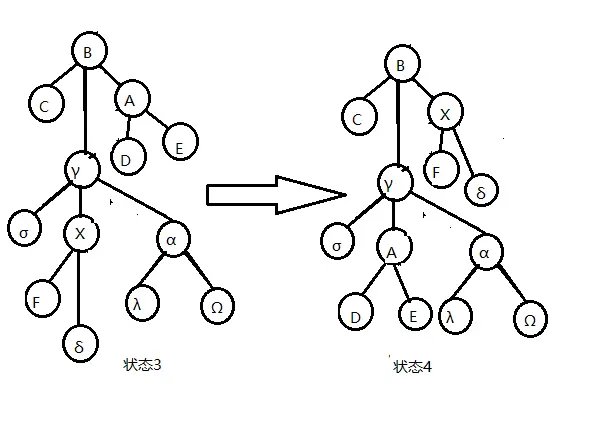 如图,为在进行 Non-local Search 时的 SATT 和对应的 原树 。